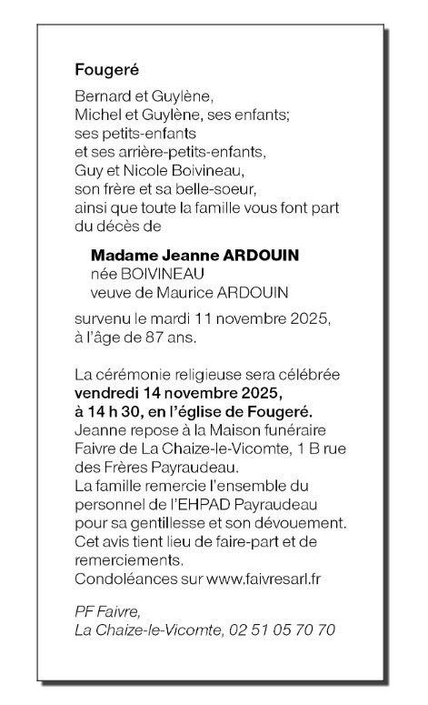 Madame Jeanne ARDOUIN née BOIVINEAU