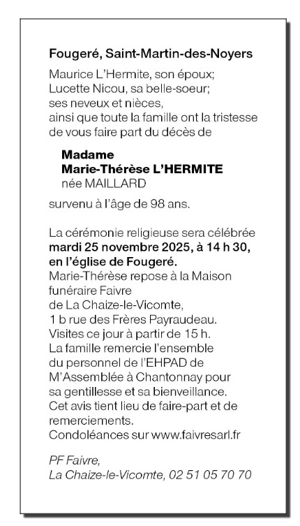 Madame Marie-Thérèse L'HERMITE née MAILLARD